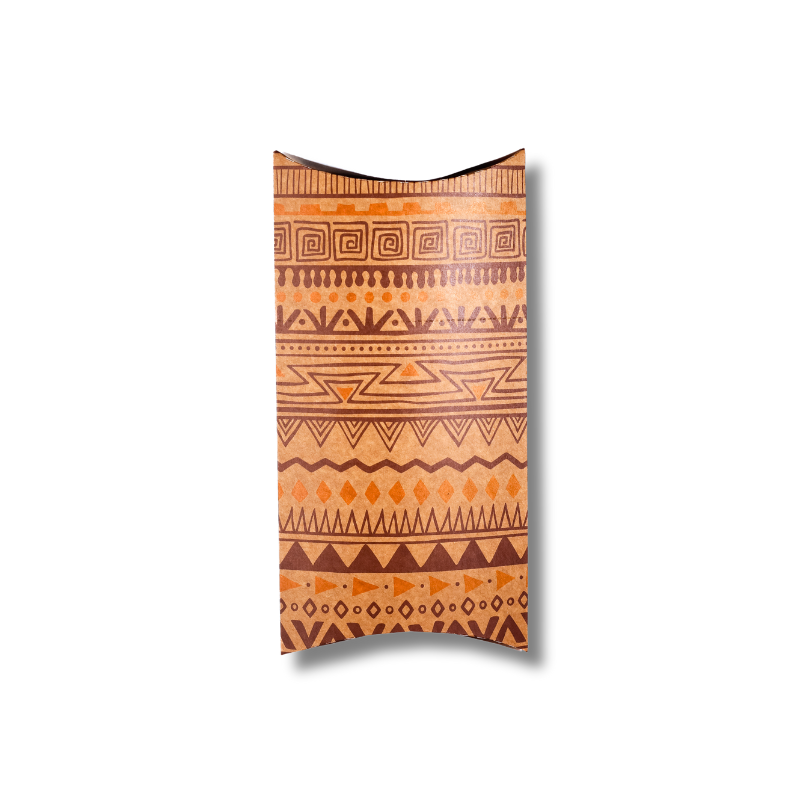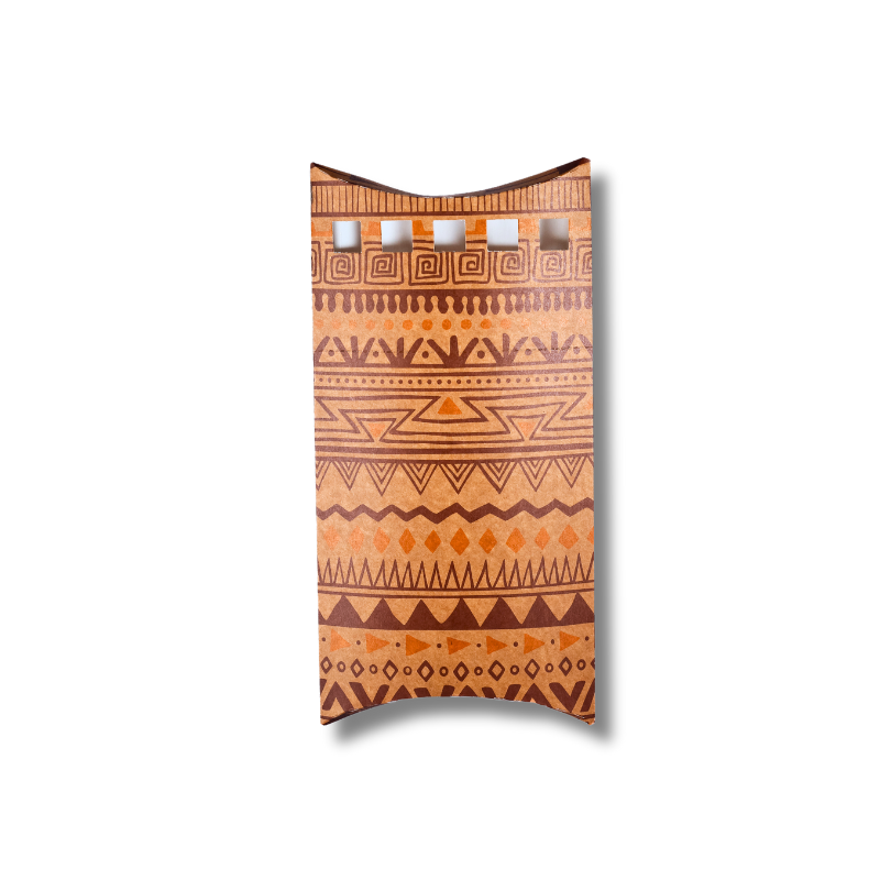 Design diferenciado: Estampa kraft com padrões geométricos que remetem ao artesanal, agregando valor à apresentação.
